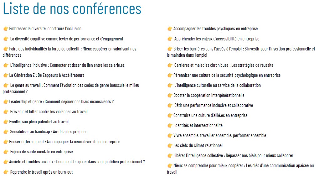 • Toutes nos conférences sont proposées au prix de 1000€ HT hors frais de personnalisation